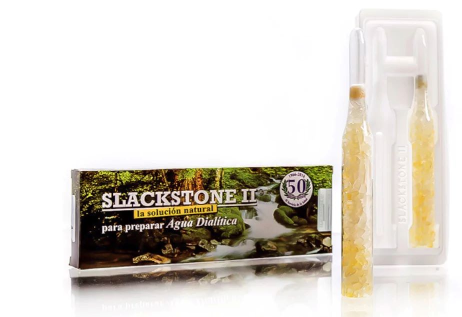 SLACKSTONE II® ampule koriste se za pripremu tzv. dijalitičke vode – posebnog oblika vode sa izmenjenom molekularnom strukturom, koja ima izuzetnu sposobnost rastvaranja kristala u organizmu.
